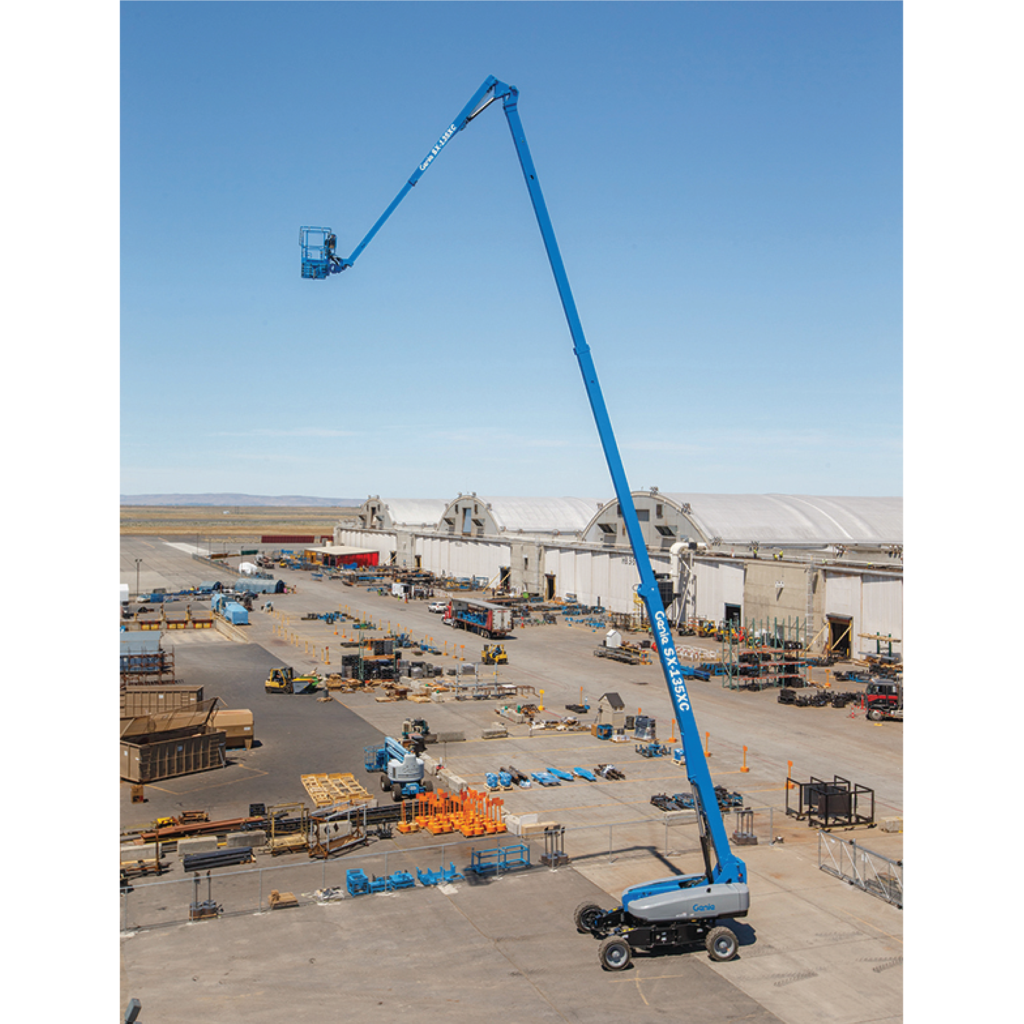 The Genie® SX™-135 XC™ telescopic boom lift provides 3 m (10 ft) more outreach and 32 per cent more capacity across its full working envelope than typical self-propelled booms of this size. Thanks to its unique up-and-over style capability, operators will easily navigate any obstacles at height.