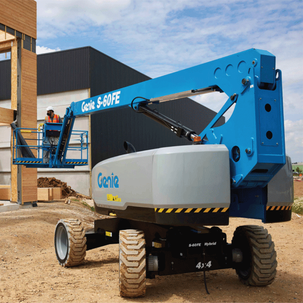 The Genie® S®-60 FE hybrid boom lift delivers rough terrain capabilities with clean and quiet jobsite performance to open the door to new opportunities in urban centers, arenas and residentials. The S-60 FE can perform in any surface including soft and loose rough terrain thanks to its lightweight. Additionally, it can work more than one week on a single tank of fuel and a full day’s shift on a single battery charge.