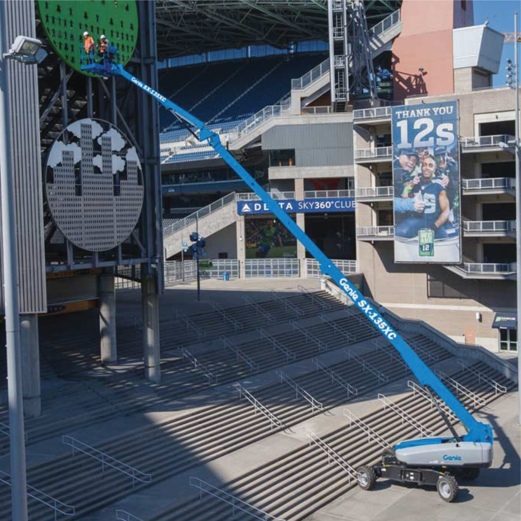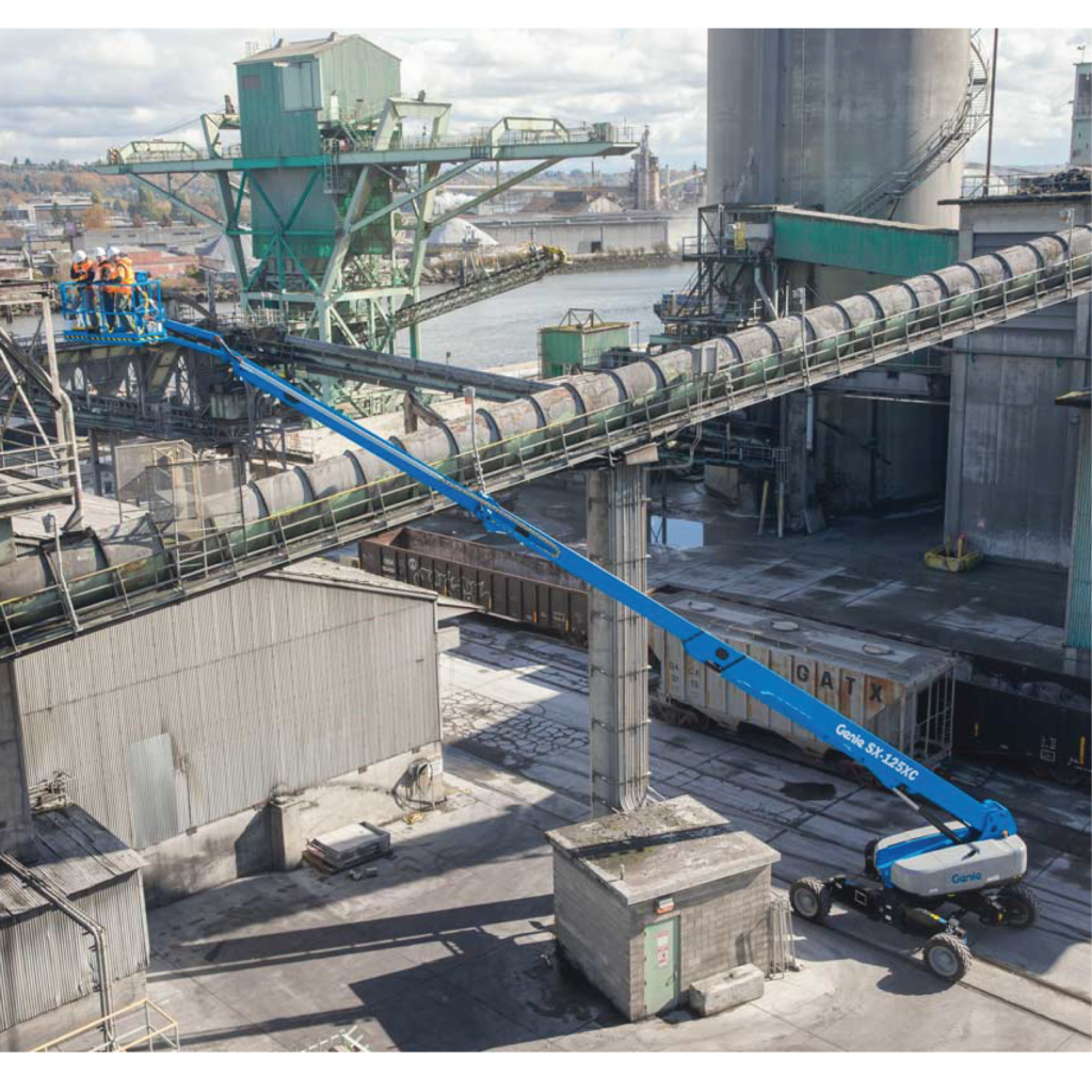 Perfect for heavy lifting in construction, bridge inspections and maintenance, stadium and sports arena, oil and gas, industrial, telecommunications and utility applications, the Genie® SX™-125 XC™ telescopic boom lift works in more applications that require higher capacities thanks to its industry-leading dual lift capacity.
