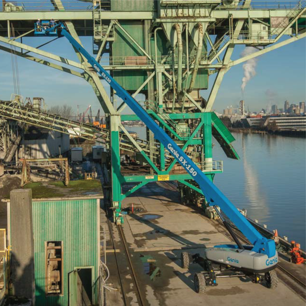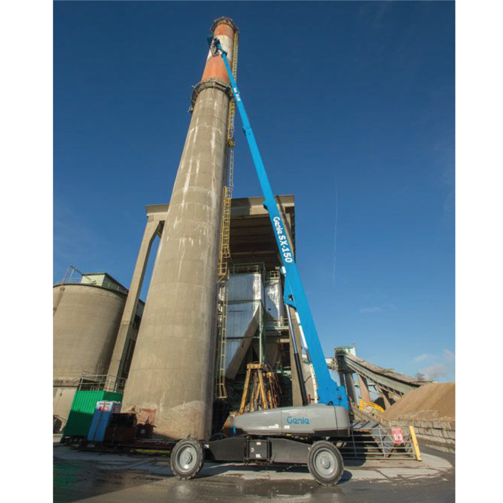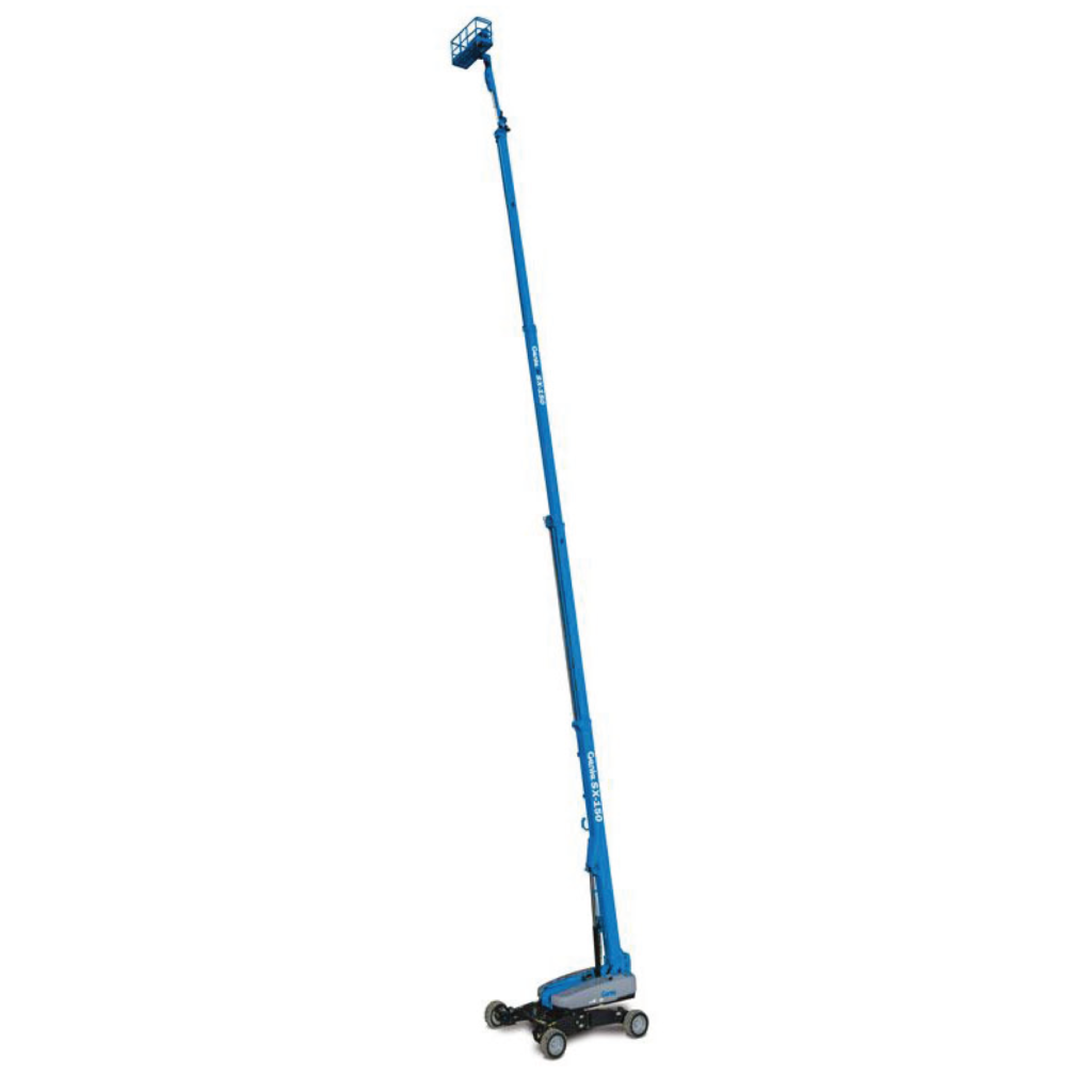 The Genie® SX™-150 telescopic boom lift offers uncompromising productivity and industry-leading capacity through the full working envelope. This Genie boom is designed to perform in even the most extreme construction, maintenance, telecommunications, gas and oil, chemical maintenance, and large utility applications.