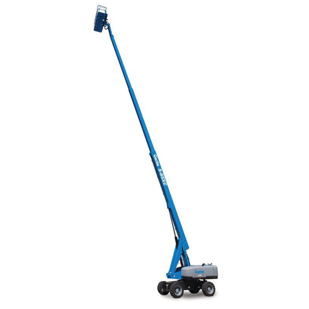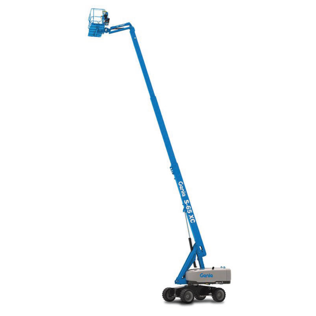 Genie® S®-XC™ telescopic boom lifts are redesigned Xtra Capacity™ versions of their popular Genie S series counterparts. They can perform a wider range of heavier lift tasks thanks to their dual lift capacity and full rough terrain capabilities.