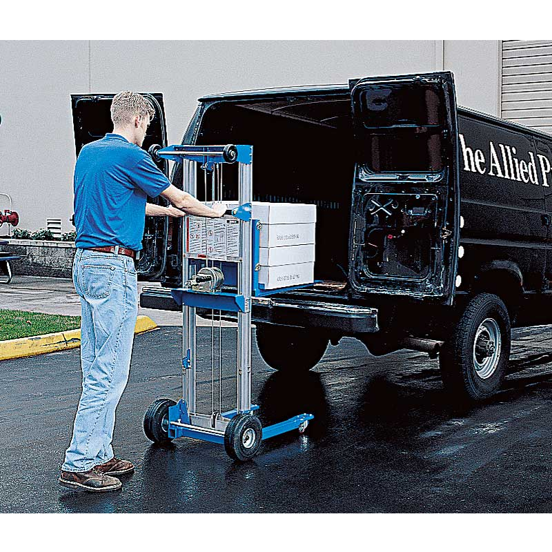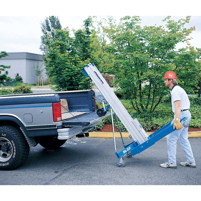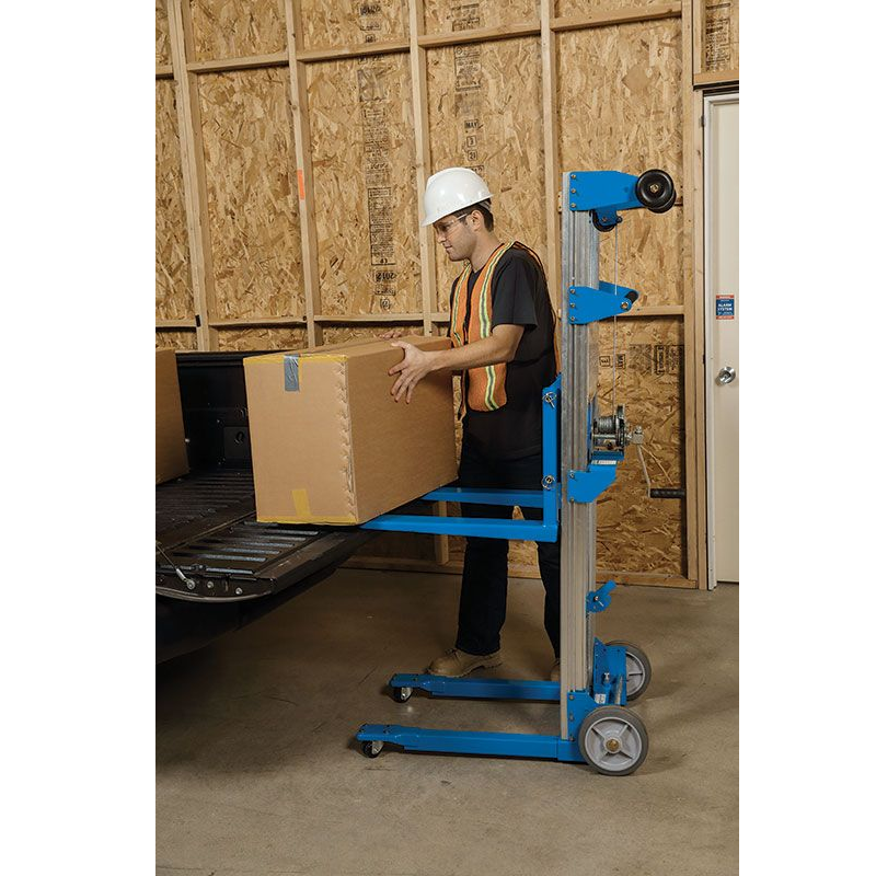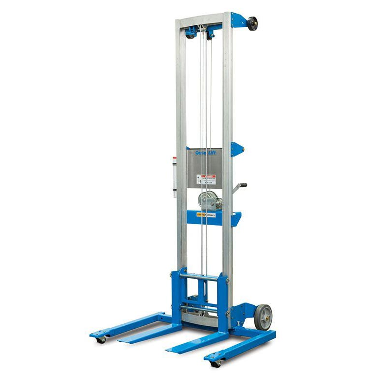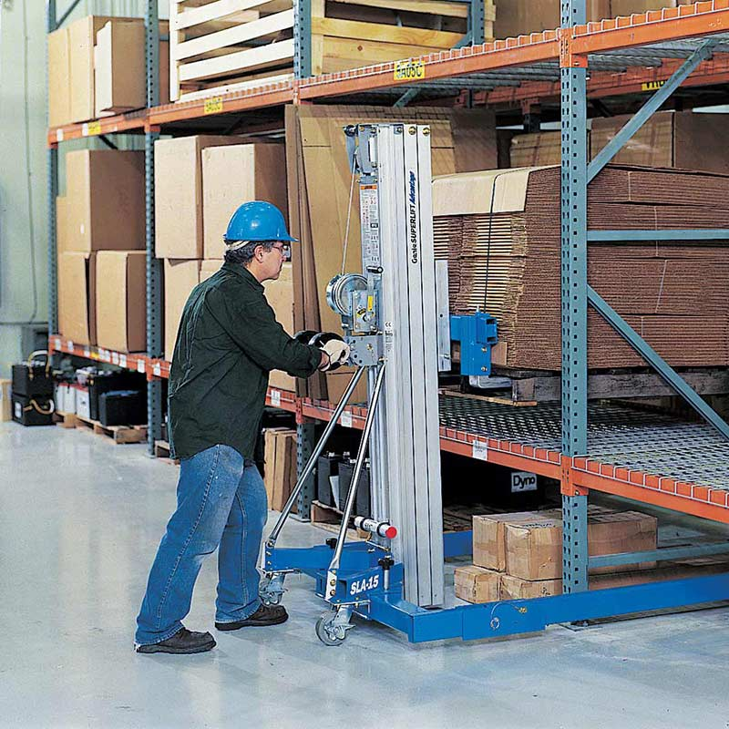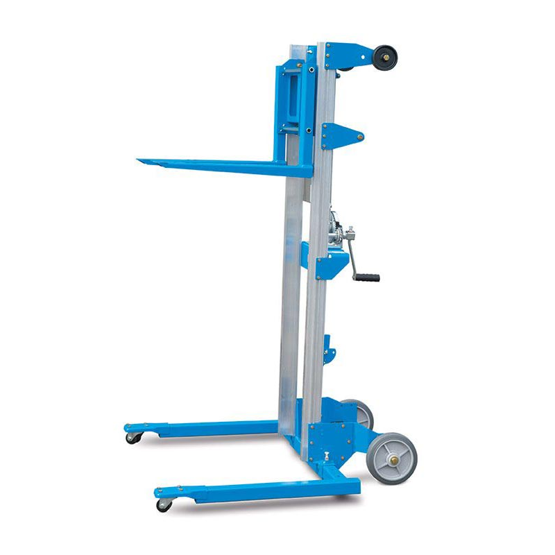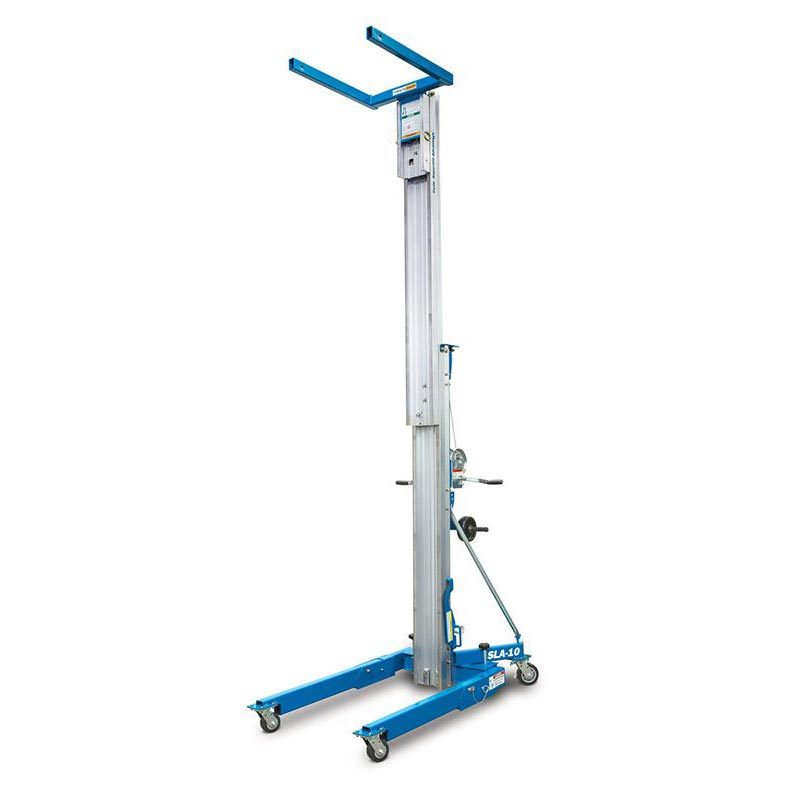 Genie® Superlift® Advantage lifts are purpose-built, manually operated material lifts that offer multiple load-handling options. The Genie Superlift Advantage SLA™-10 lift can be ordered with a versatile, adjustable straddle base that is ideal for handling wide loads, as well as narrow doorways, and can be loaded easily into a van.