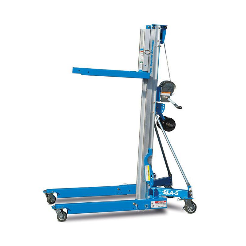 The Genie® Superlift® Advantage SLA™-5 lift is a manually operated material lift with multiple base. Its compact, portable design easily rolls through standard single doorways for productive versatility