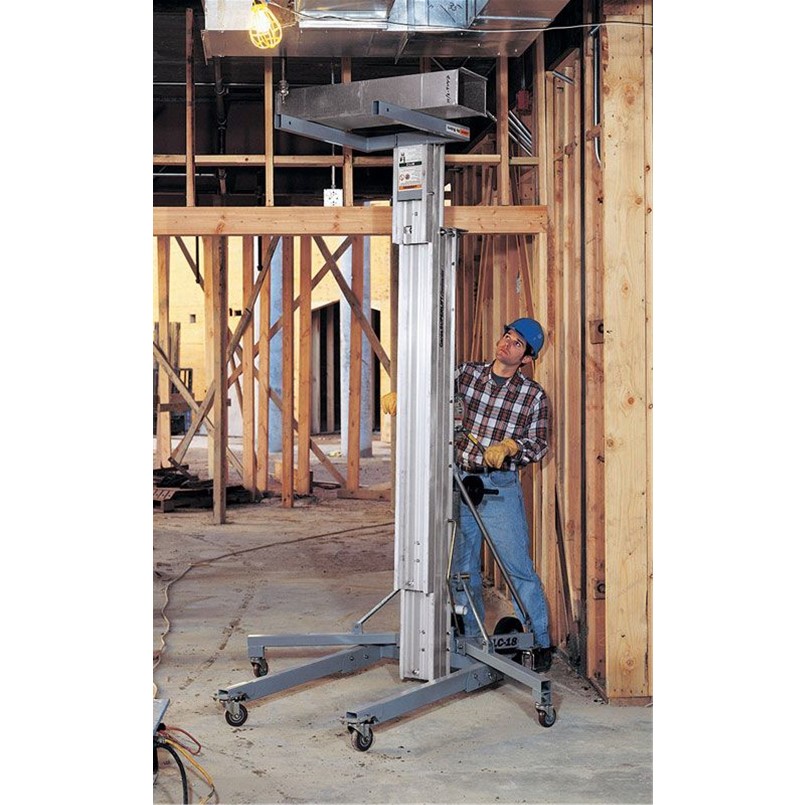 The Genie® Superlift Contractor® SLC™-12 lift is well suited for construction work, industrial applications and HVAC installations. It can be easily operated by one person to lift, lower and move heavy loads.