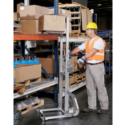 A manually operated material lift, the Genie® Load Lifter® 5.5 lift is designed to be compact & portable, allowing for simple and easy operation in warehouses and interior spaces.